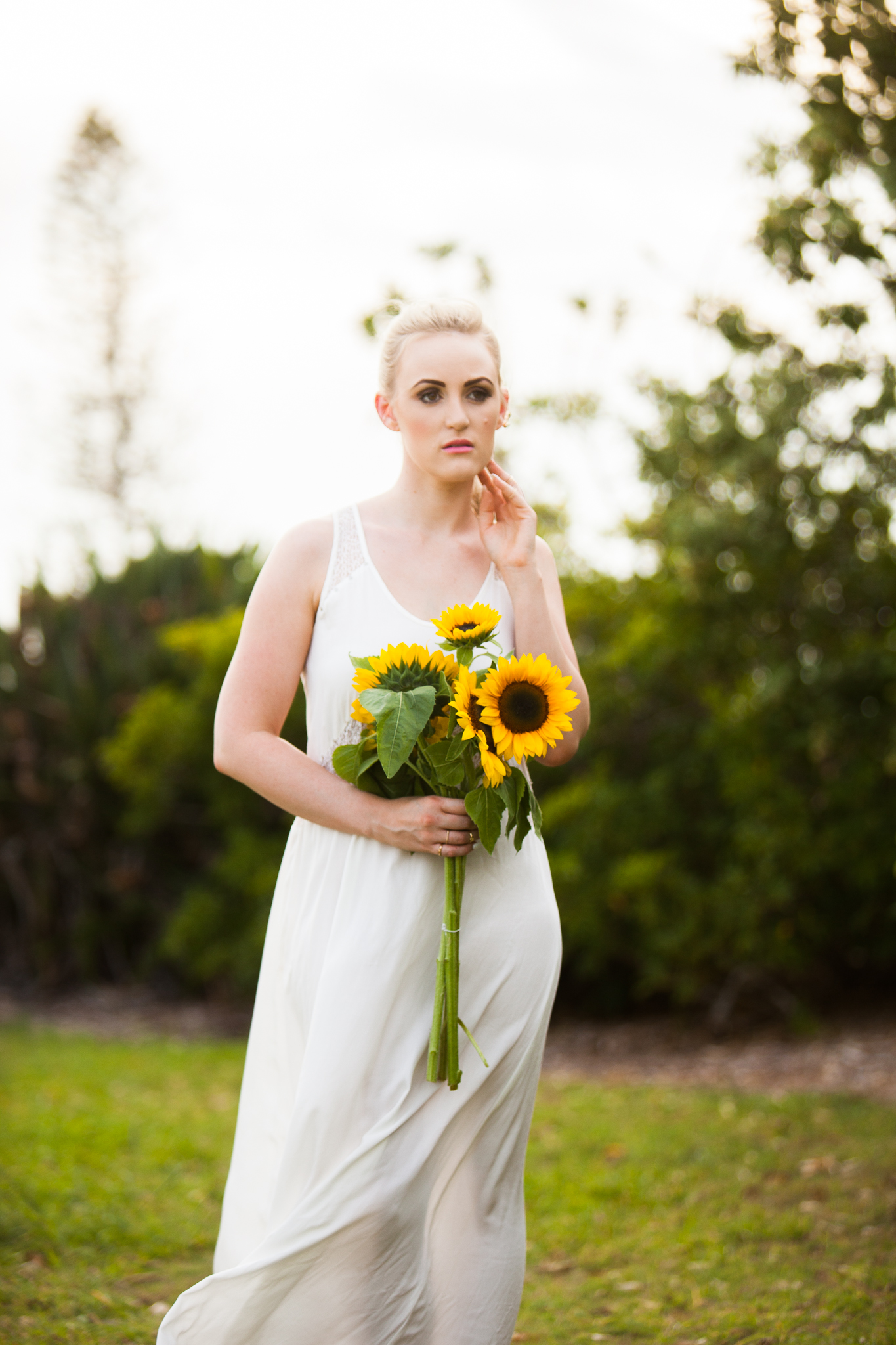 On a perfect day, in a deserted clearing, sunlight was stolen by the warm glow of a looming sunset. The winds played with the flowing fabric of her clean, crisp, white dress and her hazel eyes sparkled in the warm afternoon shadows. She clutched a fresh bunch of yellow sunflowers, while he captured her smile. Forever…