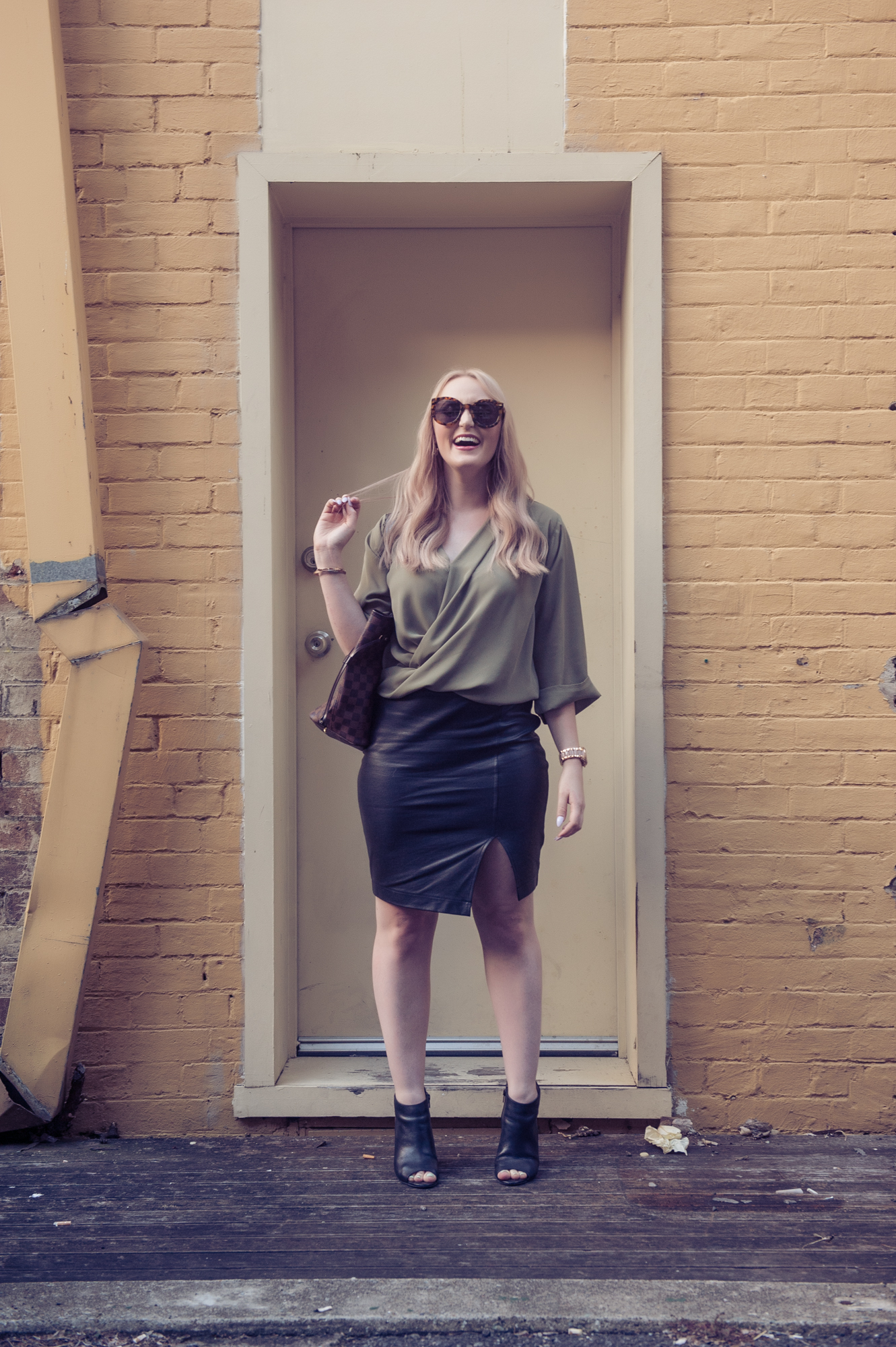 Oh I love that khaki shirt! it’s really nice with the leather skirt and it drapes beautifully! I think I need to check out French Connection! 🙂