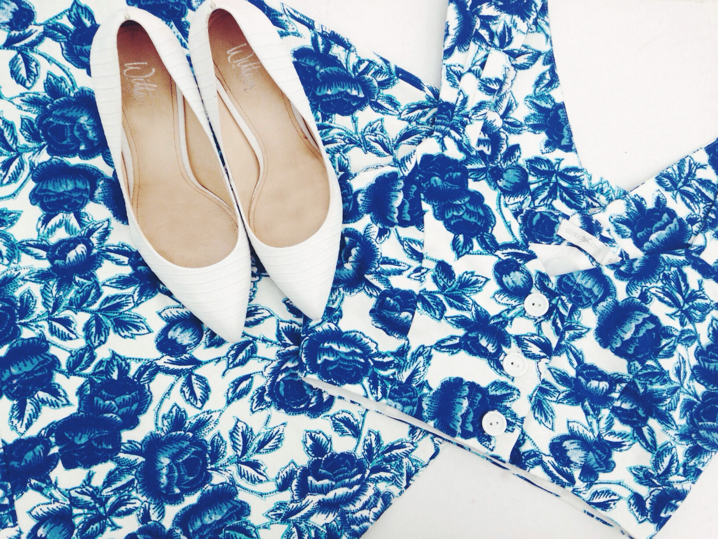 Quirky Circus Spring Is Calling Dress, Stella Furry Cardi, Pandora Infinite Love Ring, Pandora Silver Ring, Pandora Sparkling Droplets Ring, Nine West Heels.