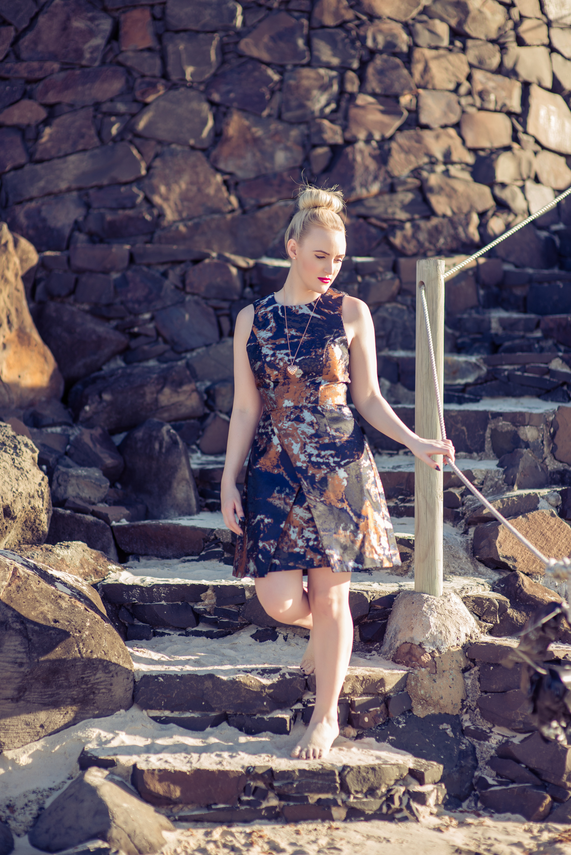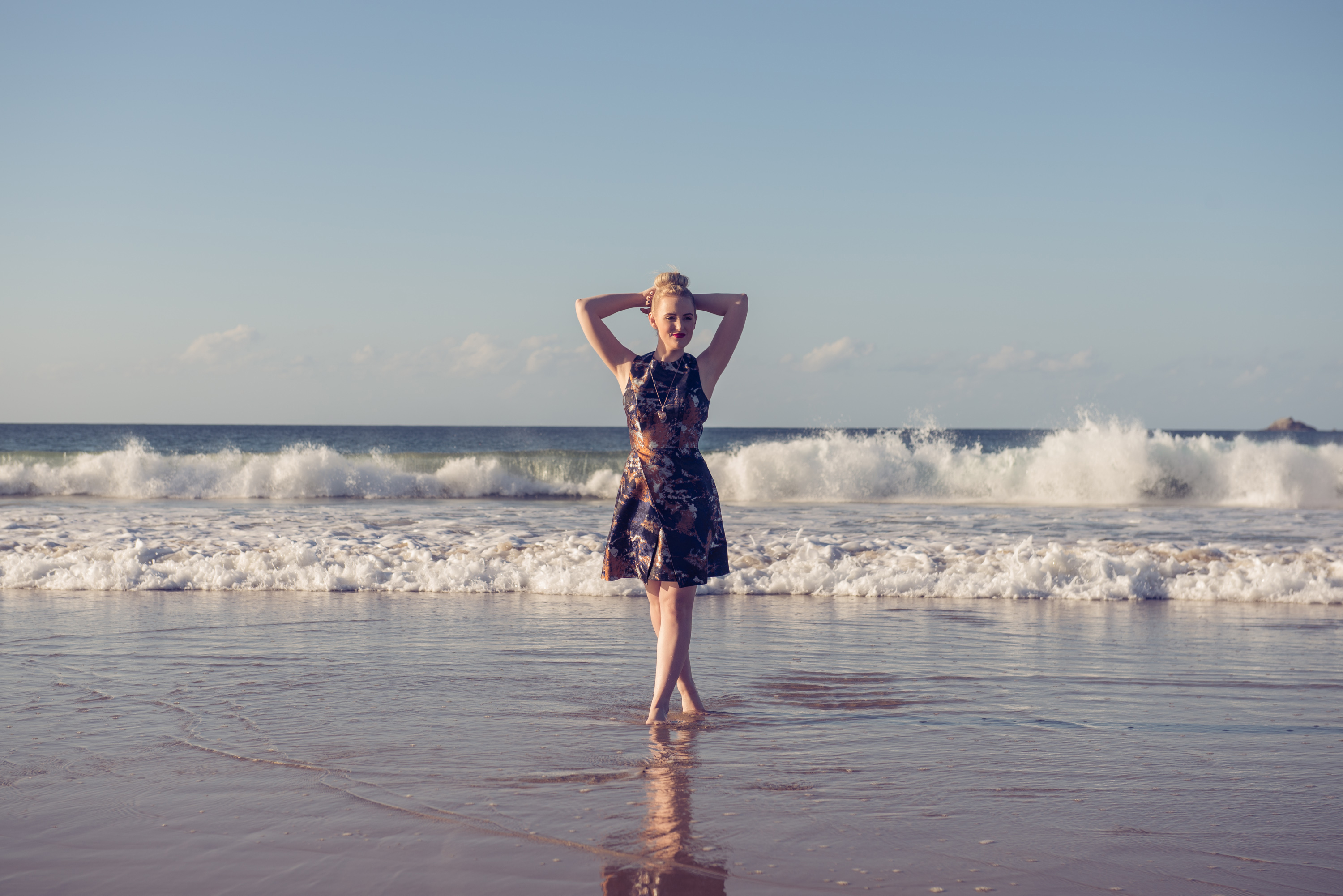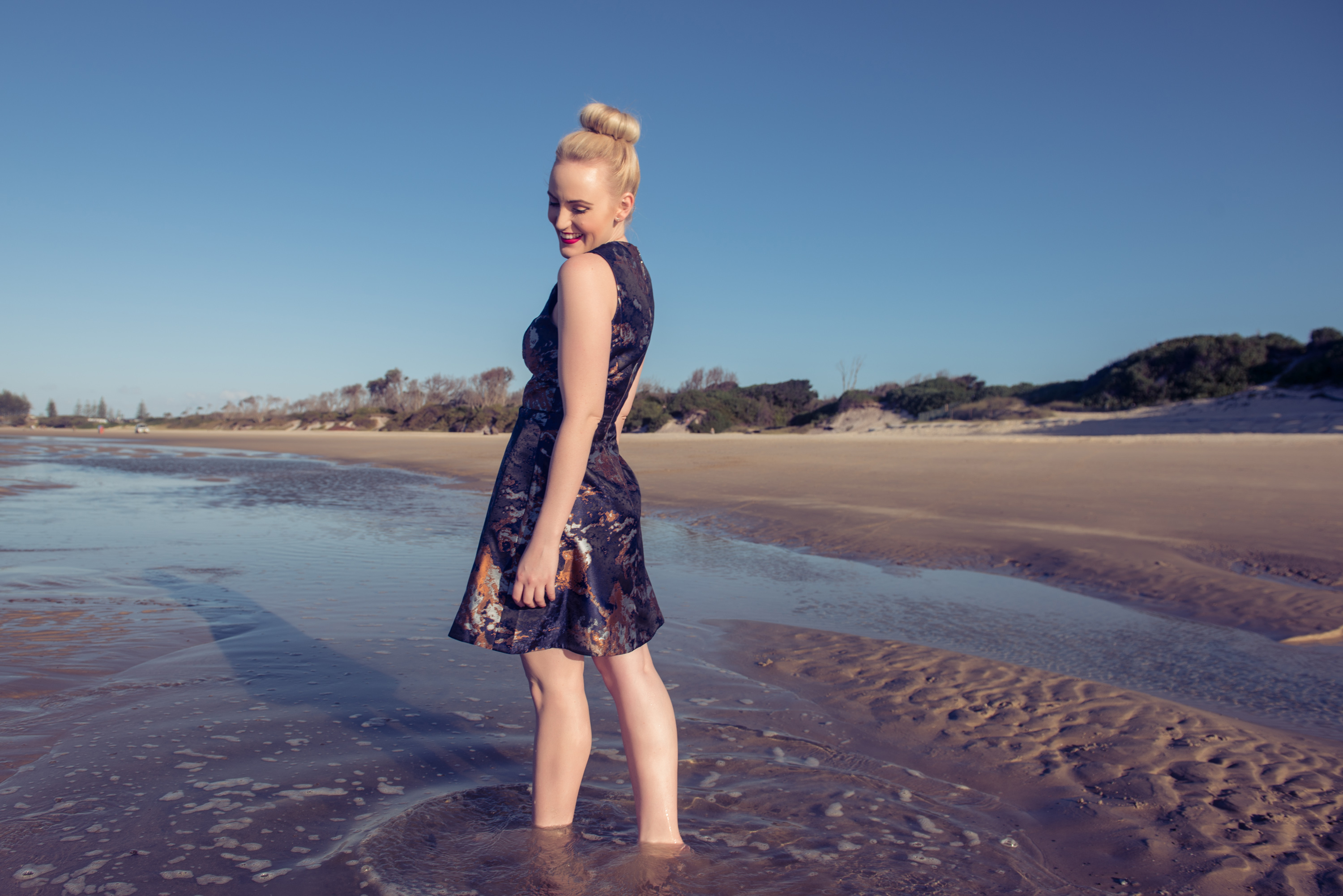 Replacing the usual heels with sand between my toes as The Blonde Silhouette goes coastal. With all the gorgeous weather and glorious public holidays, Erin Smith Photography and I packed a few of our cutest accessories and headed south for some relaxation, Byron Bay style. Perhaps it was the swirled ocean-like pattern (seen in my new DFO Jindalee purchase) that lead me to the water, but either way bare feet, salty water and ocean breezes had me escaping the stress of the city and embracing my inner water spirit.